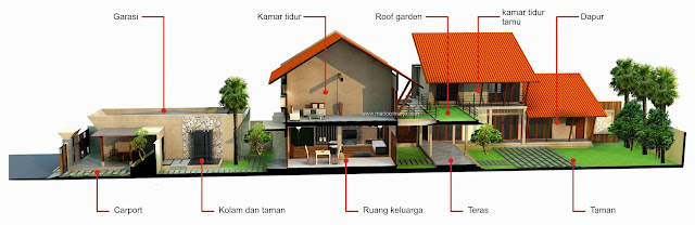 1. Bangunan pertama, hanya berfungsi sebagai garasi yang menampung 2 mobil, saya susun memanjang ke belakang agar tidak mengurangi lebar space taman di depan.